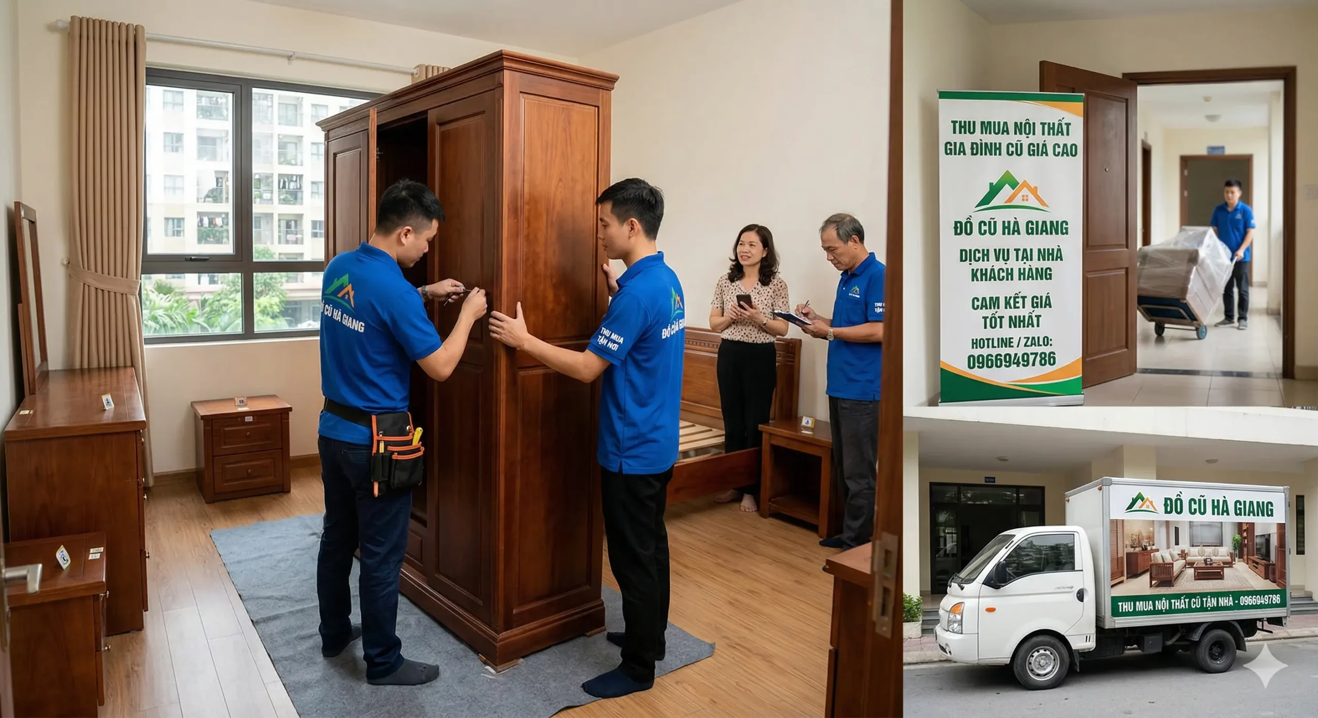 – Khách hàng gửi hình ảnh đồ cũ qua Zalo hoặc gọi Hotline. Đồ Cũ Hà Giang sẽ thẩm định tình trạng, báo giá sơ bộ và cử nhân viên đến tận nơi khảo sát hoàn toàn miễn phí.