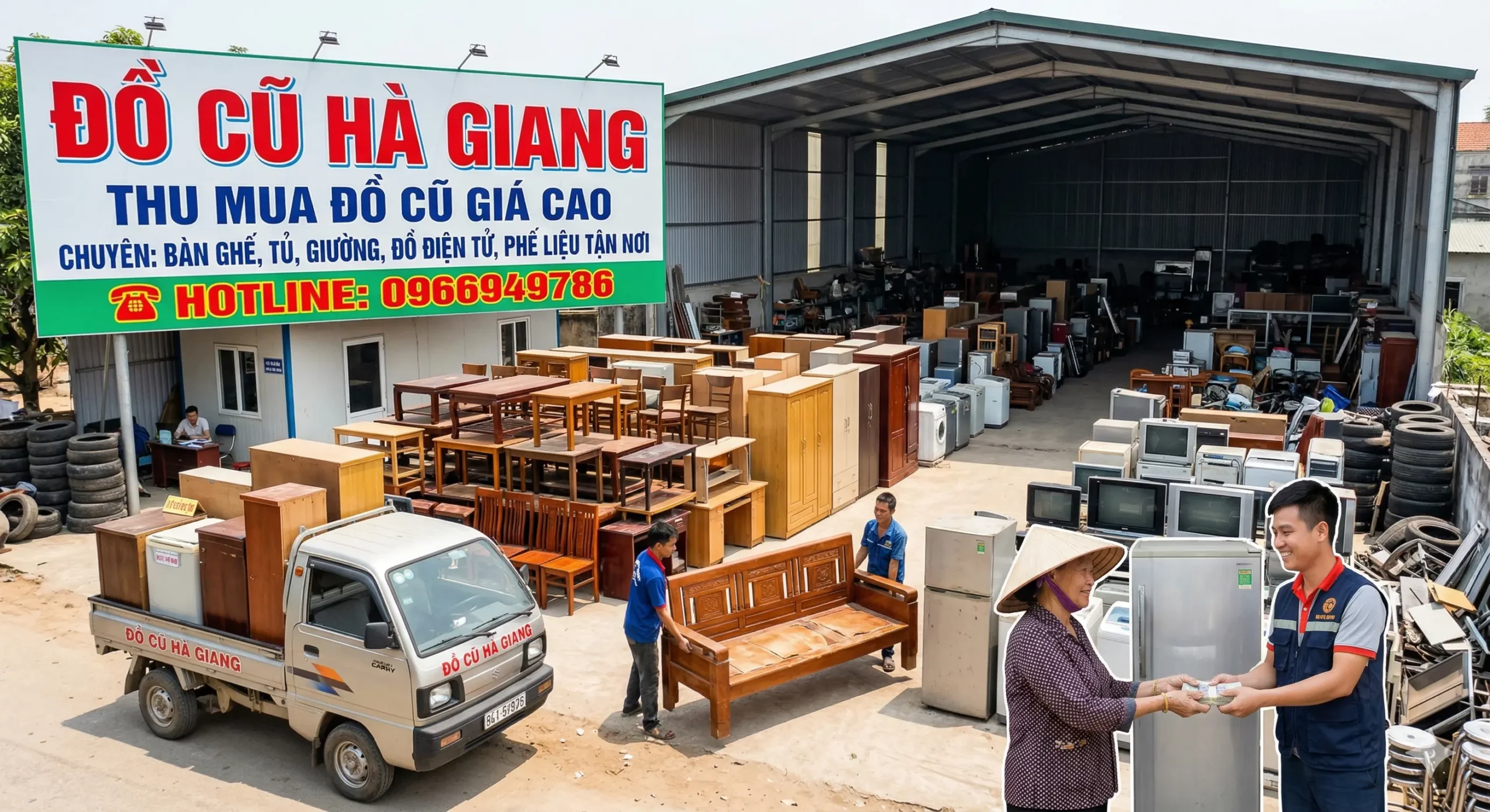 Đồ Cũ Hà Giang chuyên thu mua, thanh lý đồ cũ tận nơi với mức giá cạnh tranh nhất thị trường, kèm theo chính sách hoa hồng hấp dẫn cho người giới thiệu. Chúng tôi nhận thu mua trọn gói đa dạng các mặt hàng. Nổi bật như: thu mua nội thất gia đình, bàn ghế văn phòng, trang thiết bị nhà hàng – quán ăn, đồ gỗ mỹ nghệ, các loại cửa cũ, cùng thiết bị điện máy, điện lạnh,…